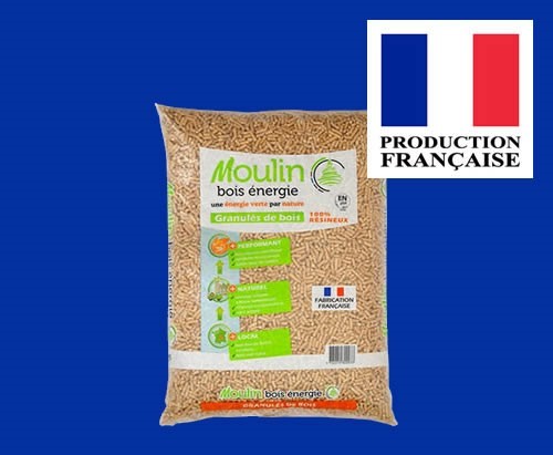 Nous vous proposons les granulés de bois de la marque Moulin Bois Energie, PME française installée au cœur de l'Auvergne et de ses massifs boisés. Leur production est soumise à des normes strictes et des contrôles qualité réguliers qui garantissent un combustible naturel, hautement performant et respectueux de l'environnement. Ils disposent de la certification européenne EN + : Biocombustible Qualité Haute Performance.